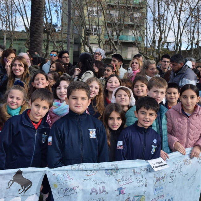 Celebramos nuestra bandera vistiendo la plaza de celeste y blanco participando de la promesa a la bandera